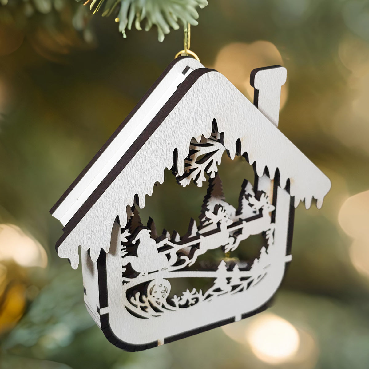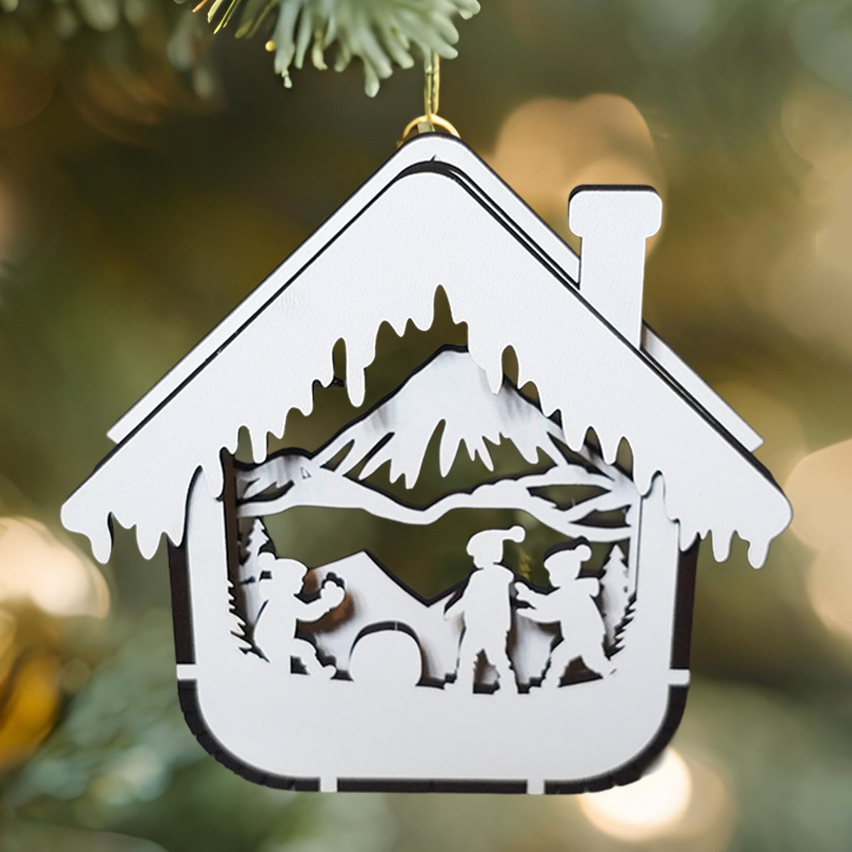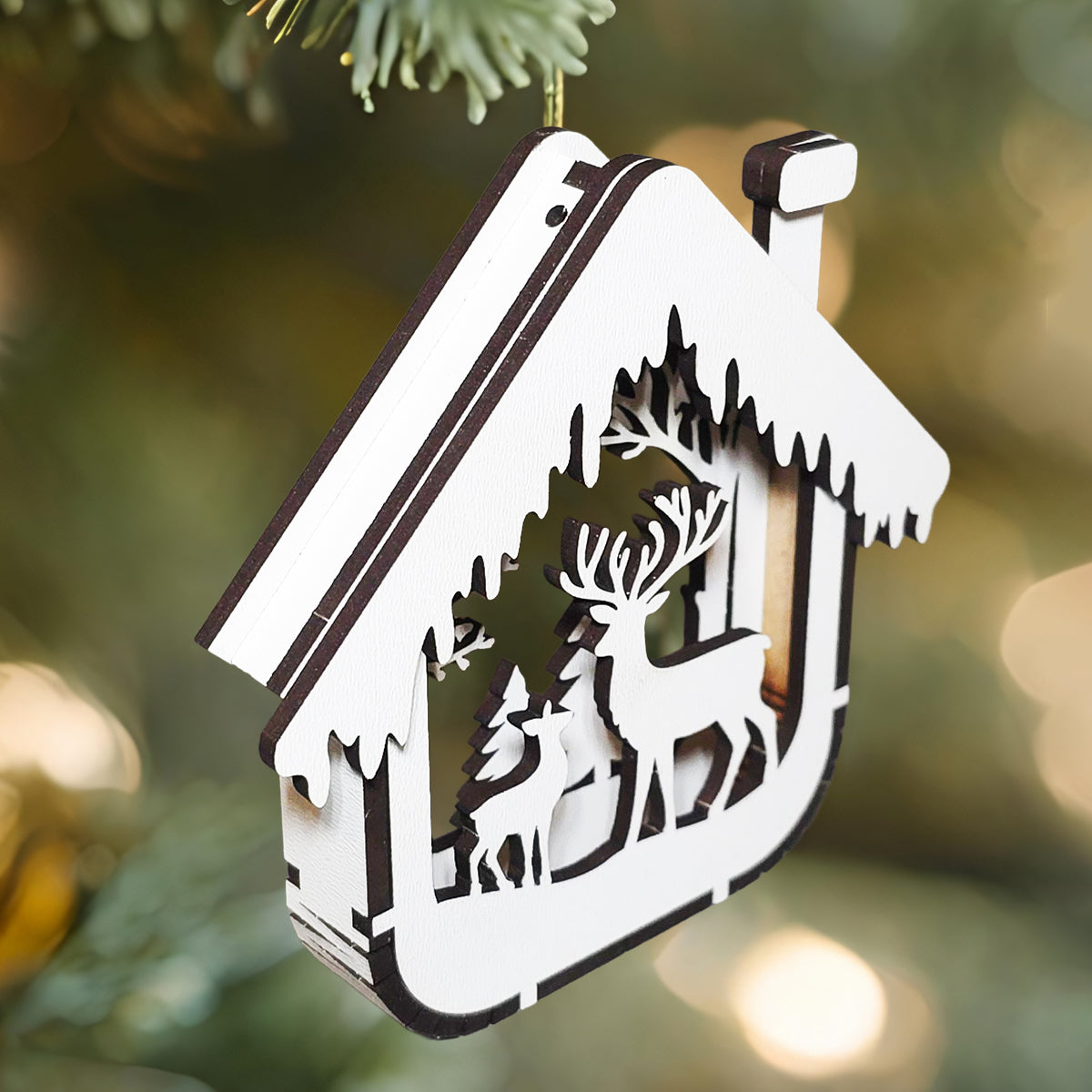 Adu magia sarbatorilor direct in bradul tau cu acest set de 4 globuri de Craciun din lemn, model 3D tip casuta, realizate cu grija si atentie la detalii. Fiecare ornament este taiat si asamblat din placaj de 3 mm, oferind un aspect premium, cu straturi multiple si siluete fine ce creeaza o scena de iarna spectaculoasa.